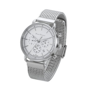 Brand Bransen-Seiko Horloge 4805 * Brand Bransen-Seiko Chronografisch Quartz horloge model: 4801. Dit exclusieve, stijlvolle horloge (beperkte oplage) is RoHS (EU) gecertificeerd. V.v. Saffierglas, VD33 Seiko uurwerk en SR920SW batterij. Kleur, Goud (mat) met witte wijzerplaat voorzien van goudkleurige tijdaanduiding en knoppen. De horlogekast en horlogeband met clip sluiting zijn vervaardigd van Inox 310. De flexibele horlogeband in combinatie met het geringe gewicht van het horloge, totaalgewicht ca. 95 gram, staat garant voor maximaal draagcomfort. De verwachte levensduur van de batterij is tot 3 jaar. Specificaties; horlogekast, diameter circa 42 mm, dikte circa 9,5 mm. Horlogeband: Totale lengte circa 205 mm, breedte circa 20 mm. De lengte van de horlogeband is met een simpele korte handeling in elke gewenste lengte aan te passen en het horloge past daardoor op elke pols. Weergave: tijd, dag en datum. Waterdichtheid: tot 5 atm.(spatwaterdicht) Inhoud verpakking; Horloge en garantie certificaat voor 2 jaar.